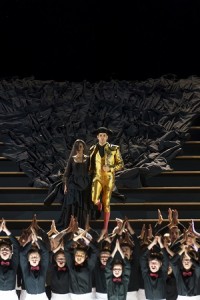 Mowa o finale, a cóż pomyśleć o drugim ukazaniu się Carmen? Pierwsze, na samym początku opery, jest zrozumiałe, choć zaskakujące: Carmen w stroju torreadora (ciekawe rozwiązanie, bo nie odbierając jej kobiecości, trafnie charakteryzuje jej siłę, pasję i bojowość charakteru). Ale czy potrzebne jest posunięcie się do pokazania jej jako dzikiej bestii, gdy w swym drugim wejściu (na szczycie ogromnych schodów wypełniających scenę przez cały spektakl) objawia się ona przed widzami jako …gorylica?